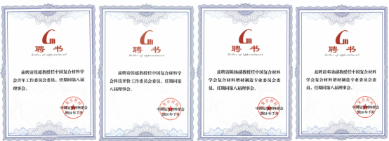 会议同期举办了中国复合材料学会各工作委员会、专业委员会和分会的换届工作。张超教授受聘为中国复合材料学会青年工作委员会委员、科技评价工作委员会委员,陈杨、邓勇副教授受聘中国复合材料学会复合材料增材制造专业委员会委员。