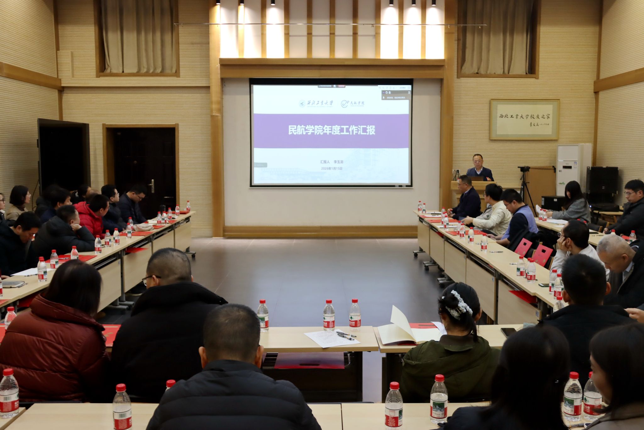 随后,经理李玉龙作公司2025年度工作总结报告。报告指出,过去一年是公司“十四五”规划收官之年,全院师生凝心聚力,在团队建设、人才培养、科学研究、团队队伍建设等方面取得显著进展,为“十四五”发展画上圆满句号。面对“十五五”开局新阶段,公司将紧紧围绕公司“一十百千”中期核心指标和“天下工大、世界三航”远景目标,明确团队建设目标,聚焦特色发展,系统谋划未来发展路径,持续深化改革创新,全面提升办学水平,为“十五五”发展开好局、起好步。