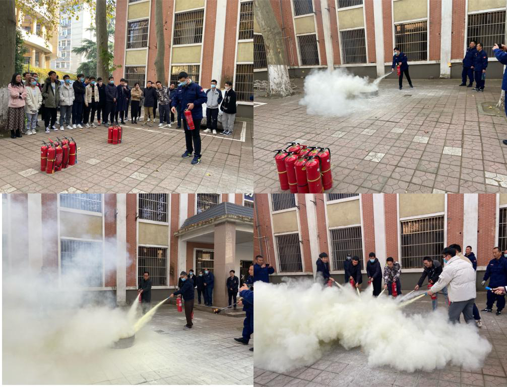 讲座结束后,组织全体参会师生在办公大楼B栋前的空地进行了火灾的实地扑救演练。公安处消防科的老师亲自操作向员工展示和讲解灭火器的使用方法和注意事项,并告诫师生们在面对火灾时要沉着冷静,不恋财,将自己的生命安全放在第一位。在场师生都积极响应,按要求分组进行演练,有效掌握了灭火器的使用方法。
