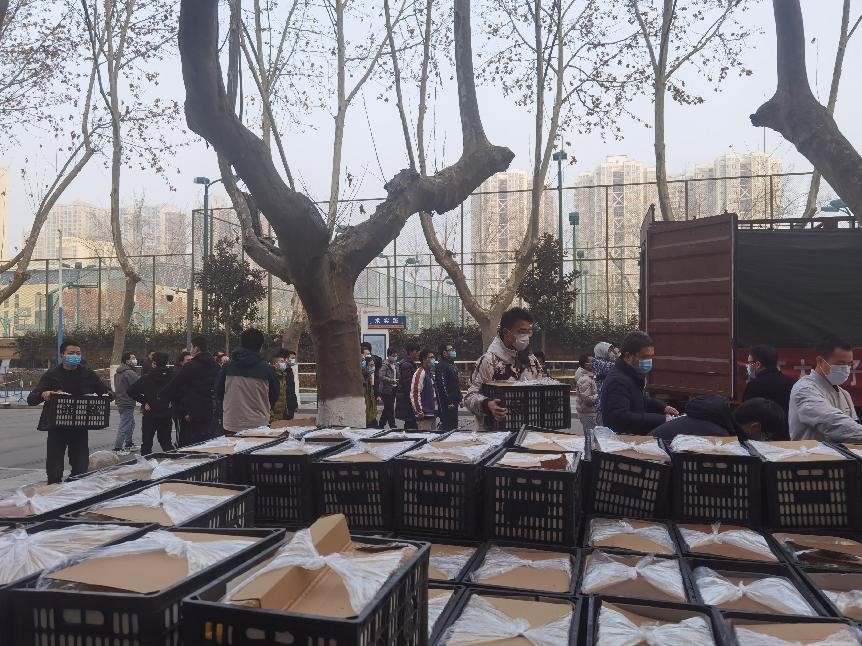 公司领导在得知员工水果供应短缺的情况后,立即联系相关合作单位,翱翔航校积极响应,在短短一天时间内,组织货源、安排运输车辆、办理相关手续、完成装箱装车。1200余筐,重约16吨的苹果分两辆卡车分别从澄城水果基地送至友谊校区和长安校区。其中,友谊校区的物资凌晨三点就抵达校门口待命。