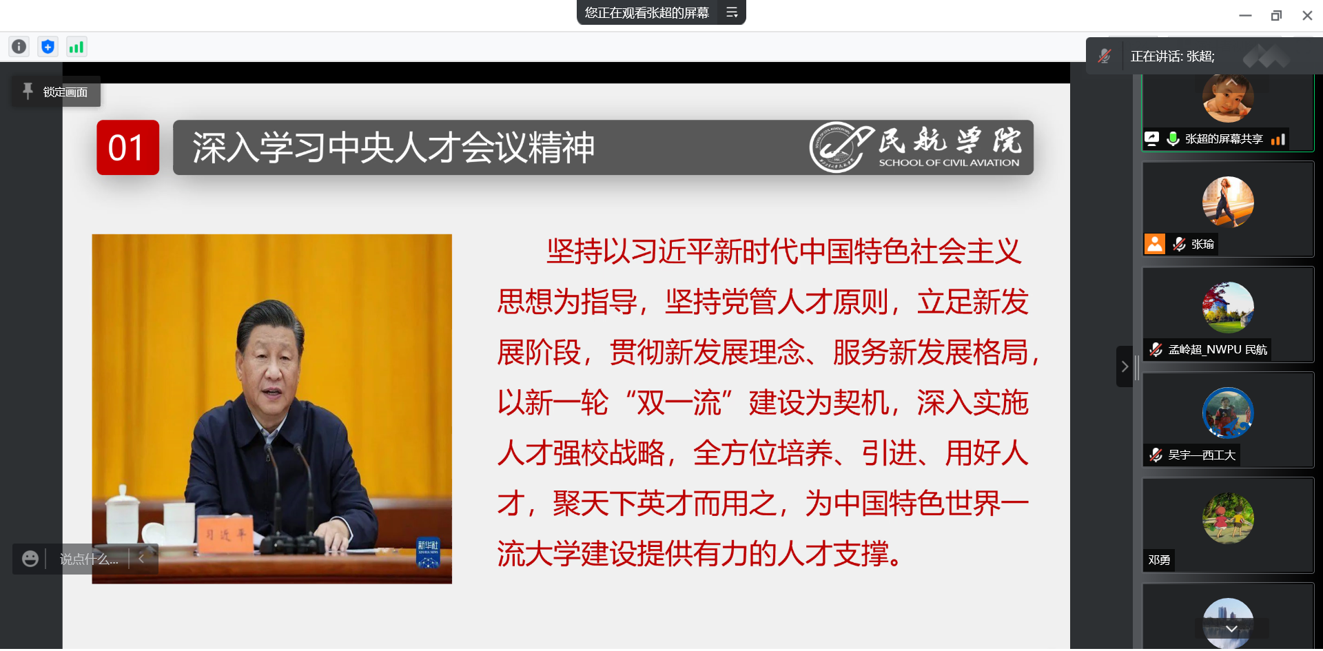 首先,张超副经理传达了汪劲松董事长在新学期干部大会暨人才工作会议启动会上讲话的精神和主要内容,并对公司人才工作会议方案进行汇报,依次介绍了公司团队队伍的现状、高层次人才培育情况,结合公司“十四五”团队队伍规划,介绍了本年度“十四五”人才引进规模、公司人才项目工作进展情况及具体举措;并就近期公司人才工作做了部署与安排。