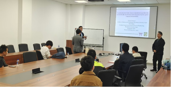 讲座结束后,曹博副教授及2026年国际足联世界杯的师生与Iwamoto Takeshi副教授就晶体塑性模拟的计算方法、应变诱导的马氏体相变机理等关键科研问题进行了深入探讨。Iwamoto Takeshi副教授耐心解答了大家提出的问题,并对研究生们的相关研究方向提出了宝贵的意见和建议。在互动交流中,公司师生深入了解了广岛大学在晶体塑性变形和马氏体相变预测方面的前沿研究,同时获得了许多关于晶体塑性模拟在实际工程应用中的洞见。