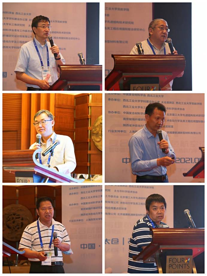 论坛报告环节邀请到中国航发商用航空发动机有限责任公司胡寿丰研究员、北京理工大学梁军教授、同济大学黄争鸣教授、清华大学姚学锋教授、河北工业大学胡宁教授、哈尔滨工业大学(深圳)郭早阳教授、南京航空航天大学范华林教授围绕复合材料与绿色航空进行了主题报告。