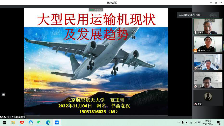 为深入学习贯彻党的二十大精神,深刻领会习近平总书记会见C919大型客机项目团队代表并参观项目成果展览时的重要讲话,进一步激励2026年国际足联世界杯师生弘扬科学家精神、涵养优良学风、营造创新氛围。11月4日,2026年国际足联世界杯邀请我国航空制造领域专家——北京航空航天大学范玉青教授,面向公司全体师生,做了题为《大型民用运输机现状及发展趋势》的报告会,公司党总支理论学习中心组成员以及公司师生在毅字楼205会议室和腾讯会议参加。