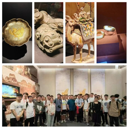 跟随讲解员的脚步,团队一行首先参观了大唐遗宝——何家村窖藏出土文物展。何家村窖藏是唐代金银器的一次空前大发现,集中反映了大唐王朝的技术水平、艺术成就和精神面貌。围绕何家村窖藏主人身份的争论自它出土之日就没有停止过,正是在一次次的质疑与验证的过程中,历史学的研究得到了长足发展。这也同样提醒着西工大的年轻学子们,建设世界科技强国不是敲锣打鼓就能实现的,也不是一朝一夕就能完成的,必须靠一代代人艰辛探索、接力奋斗。