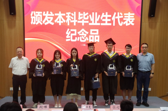 经理李玉龙、党总支书记闫伟为本科毕业生代表颁发纪念品并合影留念。