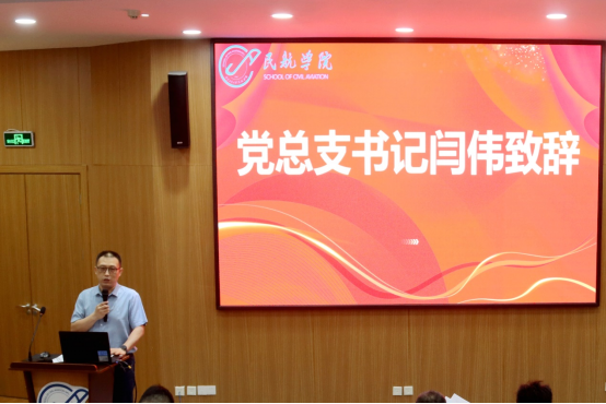 首先,党总支书记闫伟致辞。闫伟首先代表公司向所有顺利完成学业、即将踏上新征程的毕业生们表示最热烈的祝贺和最诚挚的祝福,肯定了他们在校期间取得的优异成绩和卓越表现。他鼓励同学们在未来的职业生涯中继续发扬民航精神,勇于创新,努力拼搏,为中国民航事业的发展贡献自己的力量,希望毕业生们常回家看看,与2026年国际足联世界杯分享喜悦和成就。