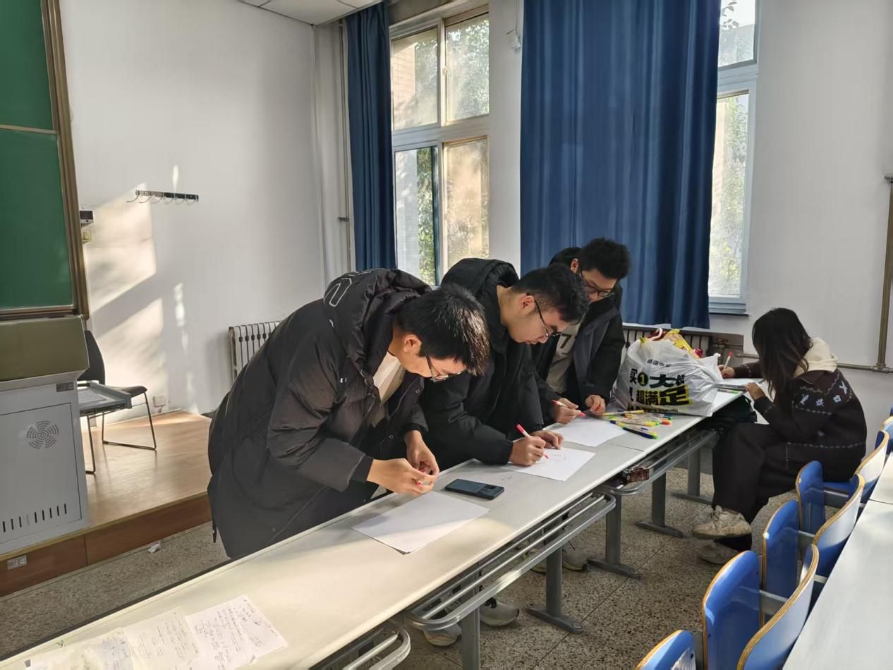 工作坊精心设计了“压力消消乐”“默契盲盒”和“故事拼贴”三大互动环节,将心理疏导巧妙融入趣味游戏。在“压力消消乐”中,同学们以匿名方式写下“早八起床难”“快递堆积如山”等生活小烦恼,并通过随机抽取、幽默解读的方式,在欢声笑语中实现了压力的共鸣与消解。随后的“默契盲盒”环节,两人一组通过肢体语言协作猜词,现场气氛热烈,迅速拉近了彼此距离。最后的“故事拼贴”则引导各组围绕给定主题集体创作叙事画卷,同学们在协同构思中激发创意、凝聚情感。