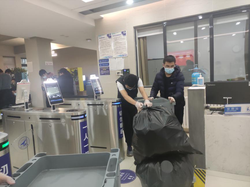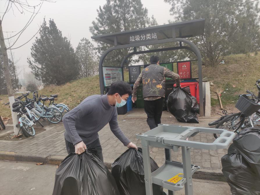 清晨,负责配送餐的志愿者们早早地来到宿舍楼下,开始协助老师核定餐食数量,搬运餐饭,为同学们送餐上门。虽然天气寒冷,但志愿者们却工作地热火朝天。傍晚,志愿者们又会将同学们的垃圾分类处理,统一运送到指定地点,保证了宿舍楼的整洁干净。他们用暖心的服务获得同学们的一致好评,用忙碌的身影诠释着青年志愿者的责任与担当。